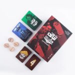 | اقلام همراه | ۸ تا کارت هویت (جوکر، جان ویک، والتر وایت، تامی شلبی، پروفسور، جیگ ساو، آنتون شیگور، هانیبال لکتر)، ۸ تا دسته کارت بازی ( با هم میشه ۶۴ تا کارت)، ۶ تا کارت دوئل، ۵۴ تا کارت طلا با سه مقدار (۳، ۴ و ۵)، ۸ تا پایهی کارت، بروشور بازی |