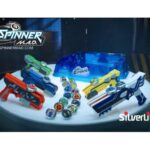 تفنگ Spinner M.A.D مدل Sandstormتفنگ Spinner M.A.D برای مسابقهی هیجانانگیز در دنیای اسپینرهاست. با داشتن این سلاح و اسپینهای مخصوصشون میتونید به شیوههای مختلف حمله و دفاع کنید. پایهی همراه اسپینر، یه پایهی شانسیه که نوع حملهی شما رو مشخص میکنه که میتونید مشخصاتشون پشت جعبهی تفنگتون ببینید. برای تزیین و جذابتر کردن اسلحهتون از برگهی استیکر موجود استفاده کنید تا در رقابت بیشتر به چشم بیاید. این مجموعه شامل 1 تفنگ مدل Sandstorm، 1 اسپینر و 1 برگ استیکر است. برای شروع مبارزه، اسپینر را در شکاف مخصوص قرار داده و اون رو تا انتها بکشید تا قفل بشه؛ گلنگدن پایینِ تفنگ را عقب و جلو بکشید تا اسپینر سرعت بگیره؛ هرچی بیشتر و سریعتر این کار رو انجام بدید، قدرت پرتاب شما بیشتر میشه. ماشه رو بکشید و شلیک کنید. کسی که اسپینرش دیرتر از بقیه تعادلش رو از دست بده برندهی مبارزه خواهد بود.