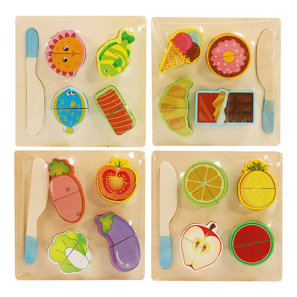 یکی از بهترین بازی های آموزشی و مهارتی برای کودکان استفاده از جورچین برشی چوبی است. در این مدل جورچین ها بچه ها با استفاده از چاقوی چوبی تلاش می کنند هر میوه یا سبزی یا کیک را به دو قسمت تقسیم کنند. این قطعات با استفاده از یک بست نایلونی به هم متصل شده اند و هنگام نصف شدن صدایی شبیه بریدن واقعی ایجاد می کنند.