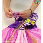 • دارای 1 دست لباس شخصیت پرنسس راپونزل به همراه تاج پلاستیکی