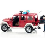 ویژگی ماشین آتشنشانی جیپ رنگلر به همراه فیگور آتش نشان برودر Bruder