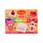 این پک یک پک دوخت و دوز خلاقانه برای کودکان بالای 5 سال است و همراه آن نخ و سوزن پلاستیکی بی خطر و الیاف برای پر کردن عروسک ها وجود دارد.