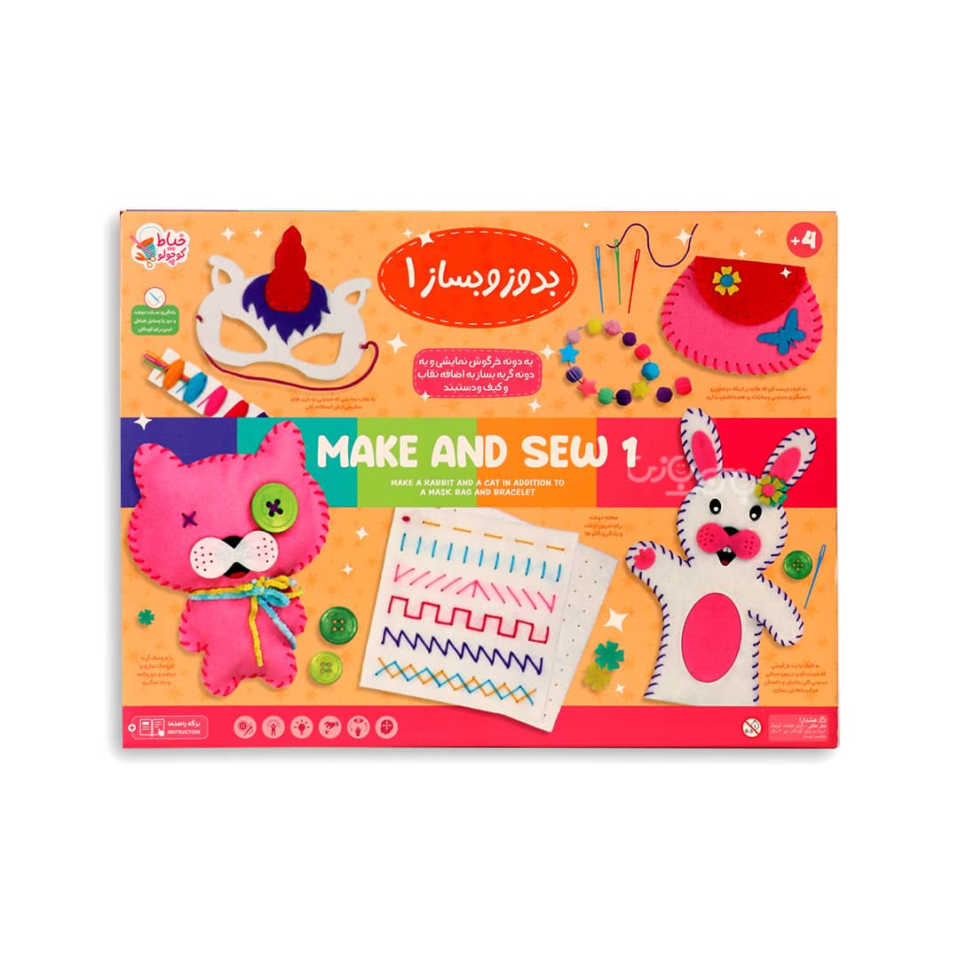 کاردستی خیاط کوچولو (بدوز و بساز 1) شامل یک عروسک گربه ، یک عروسک خرگوش ، یک دستبند قشنگ و حتی یک کیف کوچولو است.