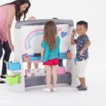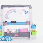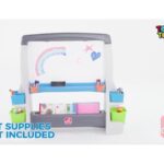 این مجموعه دارای یک تخته وایت برد، یک تخته گچی، و گیره برای قراردادن کاغذ روی تخته‌هاست تا کوچولوی شما بتواند نقاشی با وسایل گوناگون را تجربه کند. دو رو بودن تخته‌ها این امکان را به شما می‌دهد که همزمان دو کودک بتوانند از دو طرف این تخته‌ها استفاده کنند. همچنین این پک شامل 8 ظرف برای قراردادن وسایل نقاشی و یک قفسه برای گذاشتن کتاب‌ها و دفترها می‌شود که می‌توانید به وسیله آن‌ها مرتب کردن وسایل را به فسقلی‌هاتون یاد بدید.